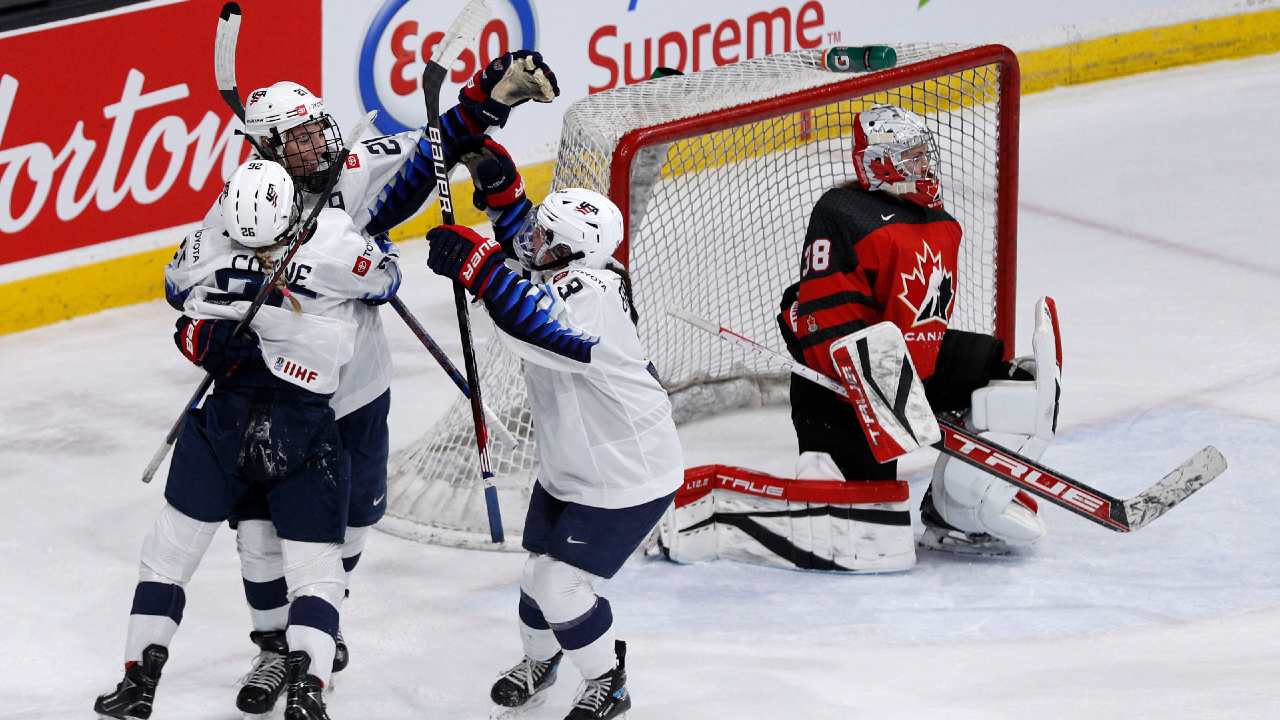 U.S. goaltender Nicole Hensley made 18 saves. Canada’s Emerance Maschmeyer stopped 21 pucks in defeat.