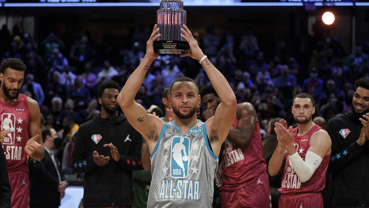 Finishing just shy of the all-time All-Star scoring record, Curry made a record-shattering 16 threes to go with 50 points — earning him the inaugural Kobe Bryant Trophy for All-Star Game MVP.
